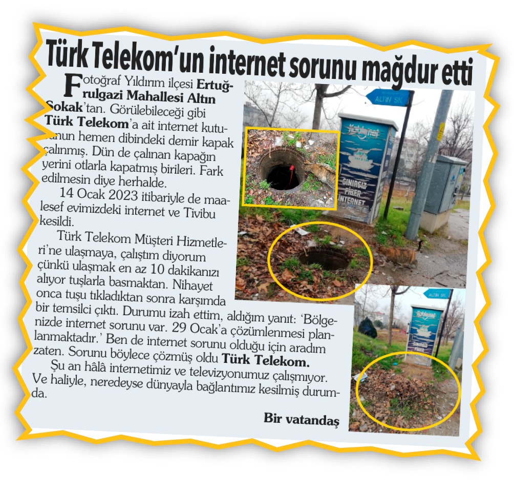 15 Ocak 2023 tarihli Söz Sizde köşesinde “Türk Telekom’un İnternet Sorunu Mağdur Etti” başlıklı yazımın yayımlanmasından sonra önceki gün Türk Telekom’dan bilgilendirme için aradılar.