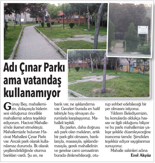 Hacivat Mahallesi’ndeki Çınar Parkı gündemimizde