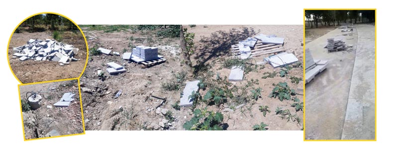 Öylesine bırakılmış döşeme taşları hasar görmüş durumda. Bu milli servet, yazık günah malzemeye.