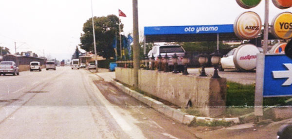 Üstteki fotoğrafta da görüleceği üzere Ankara Yolu gidiş istikametinde Otosansit’i 400 metre geçince sağdaki Opet petrolün Ankara Yolu’na paralel duvarı yola sıfır, yani yaya kaldırımı yok.