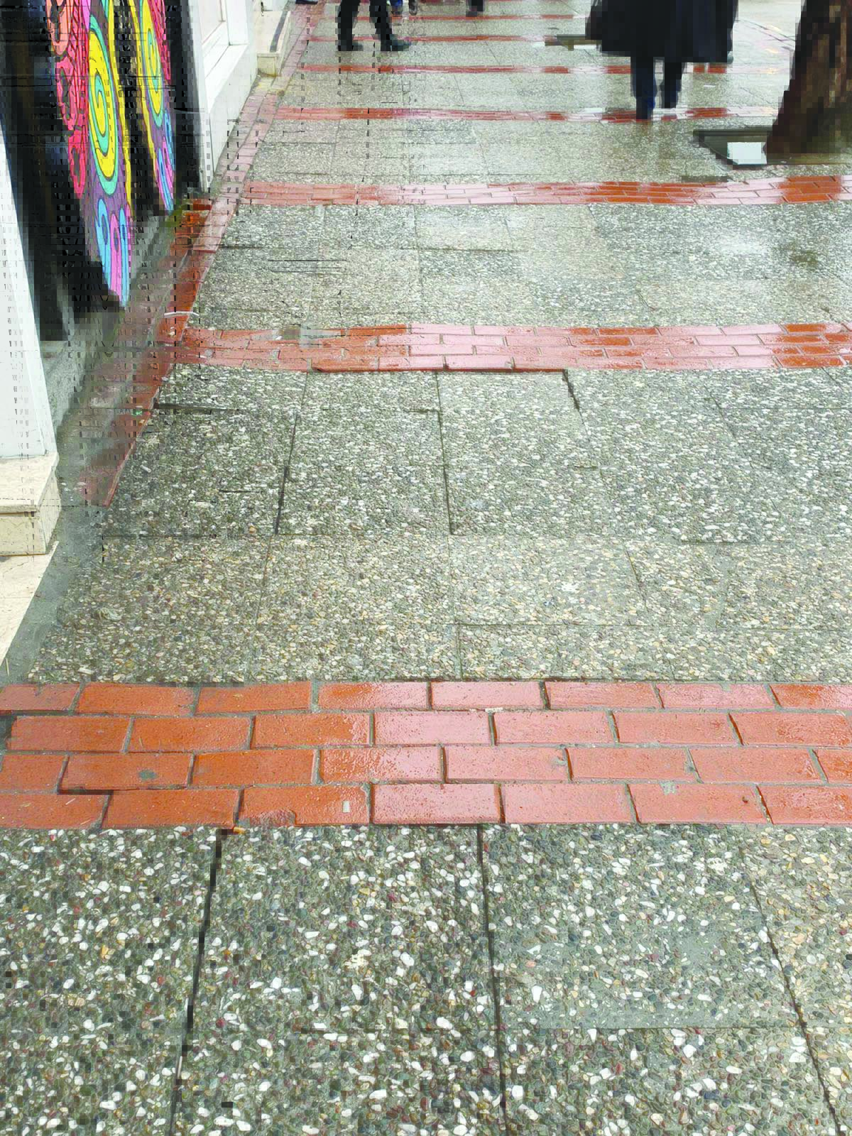 Atatürk Caddesi kaldırımlarında yağmurlu havada yürümek ayrı bir sıkıntı. Kaldırımdaki taşların altlarına yağmur suyu dolduğundan yürürken üstümüz başımız ıslanıyor. Bu taşlar sabitlenemez mi?