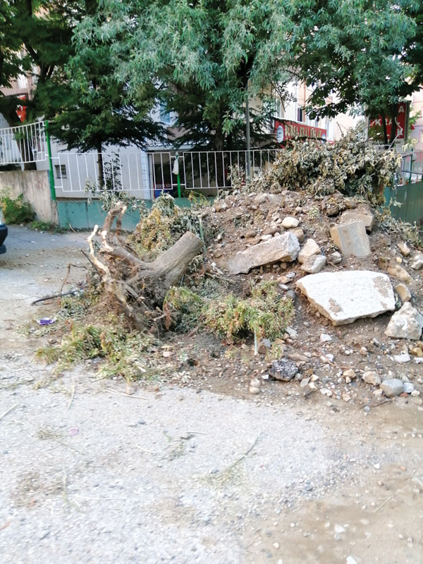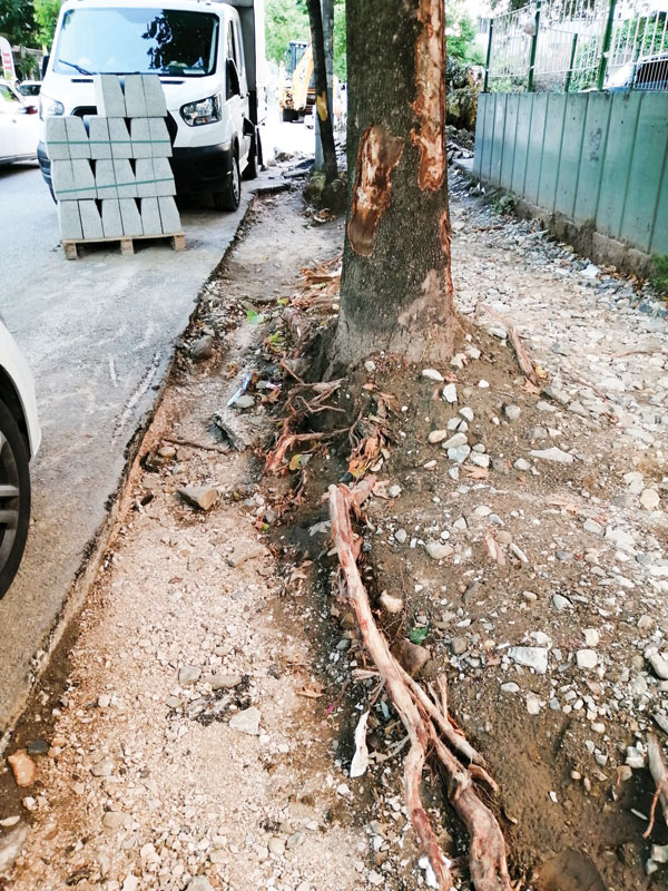 İkincisi ise kaldırımlar sökülürken iş makineleri kaldırımdaki ağaçlara zarar vermiş, ağaçlar köklerinden kopmuştur.