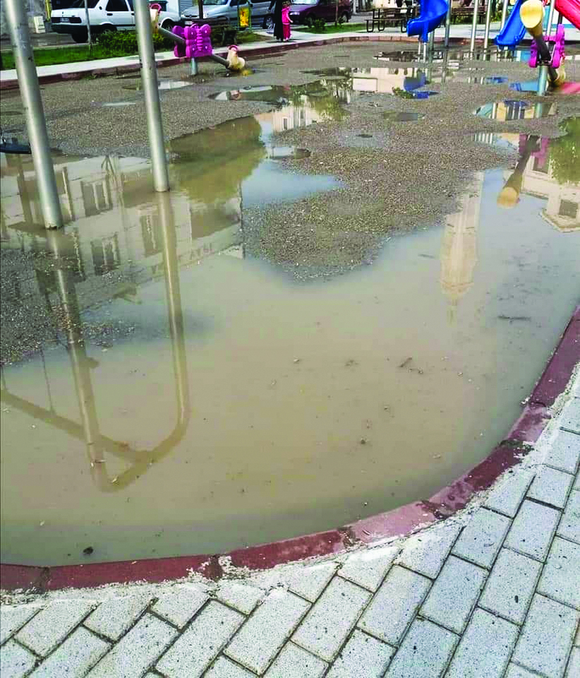 Ancak fotoğrafta da görüldüğü gibi parkımız her yağmurda küçük bir gölete dönüyor.