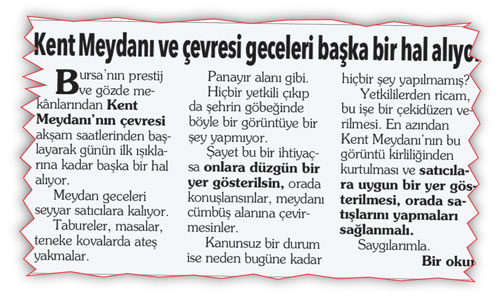 Sayın Günay Yumruktay, 5 Şubat 2020 Olay gazetesindeki köşenizde yayımlanan “Kent Meydanı ve Çevresi Geceleri Başka Bir Hal Alıyor” başlıklı köşe yazısı tarafımızdan incelenmiştir.