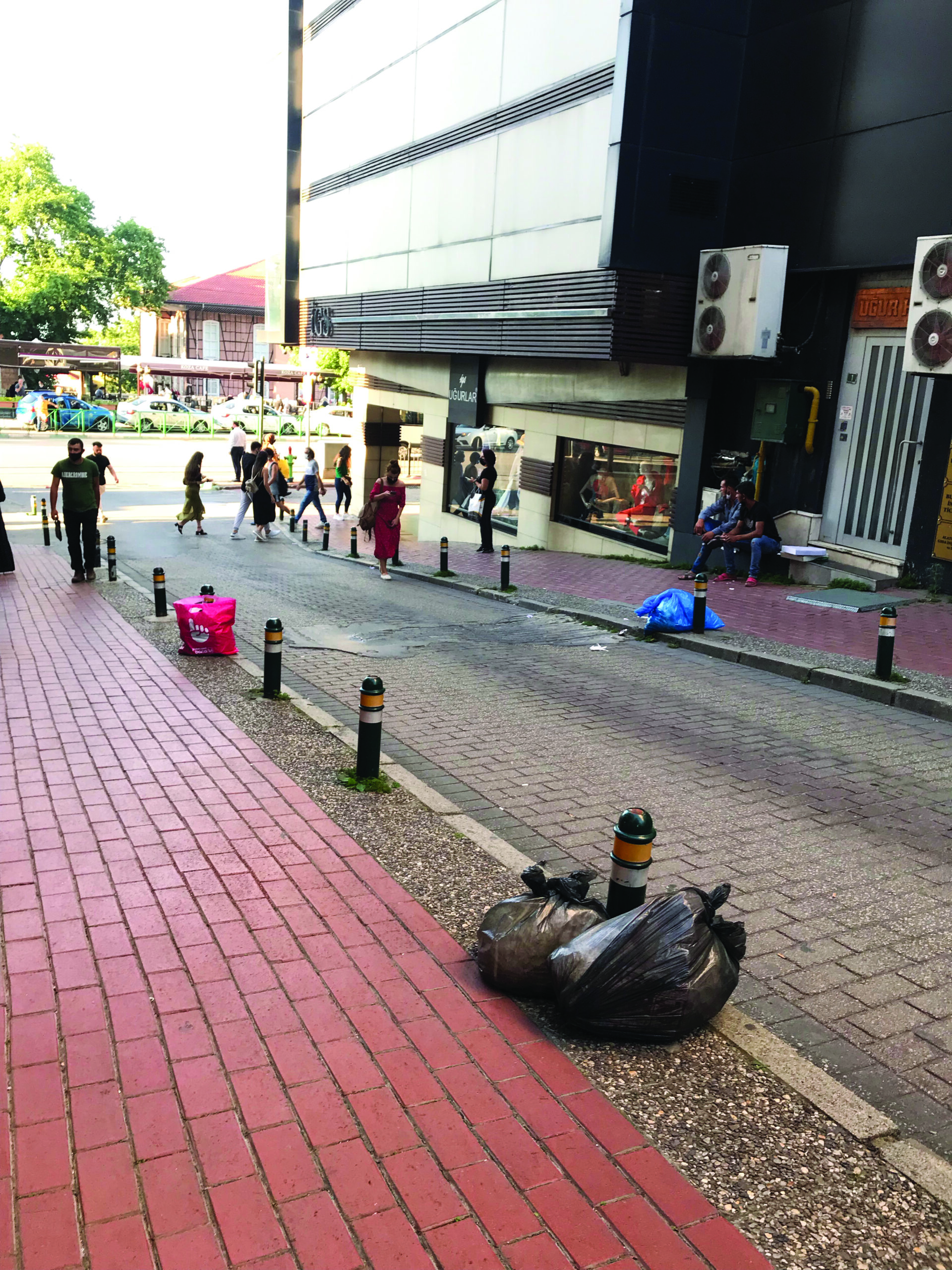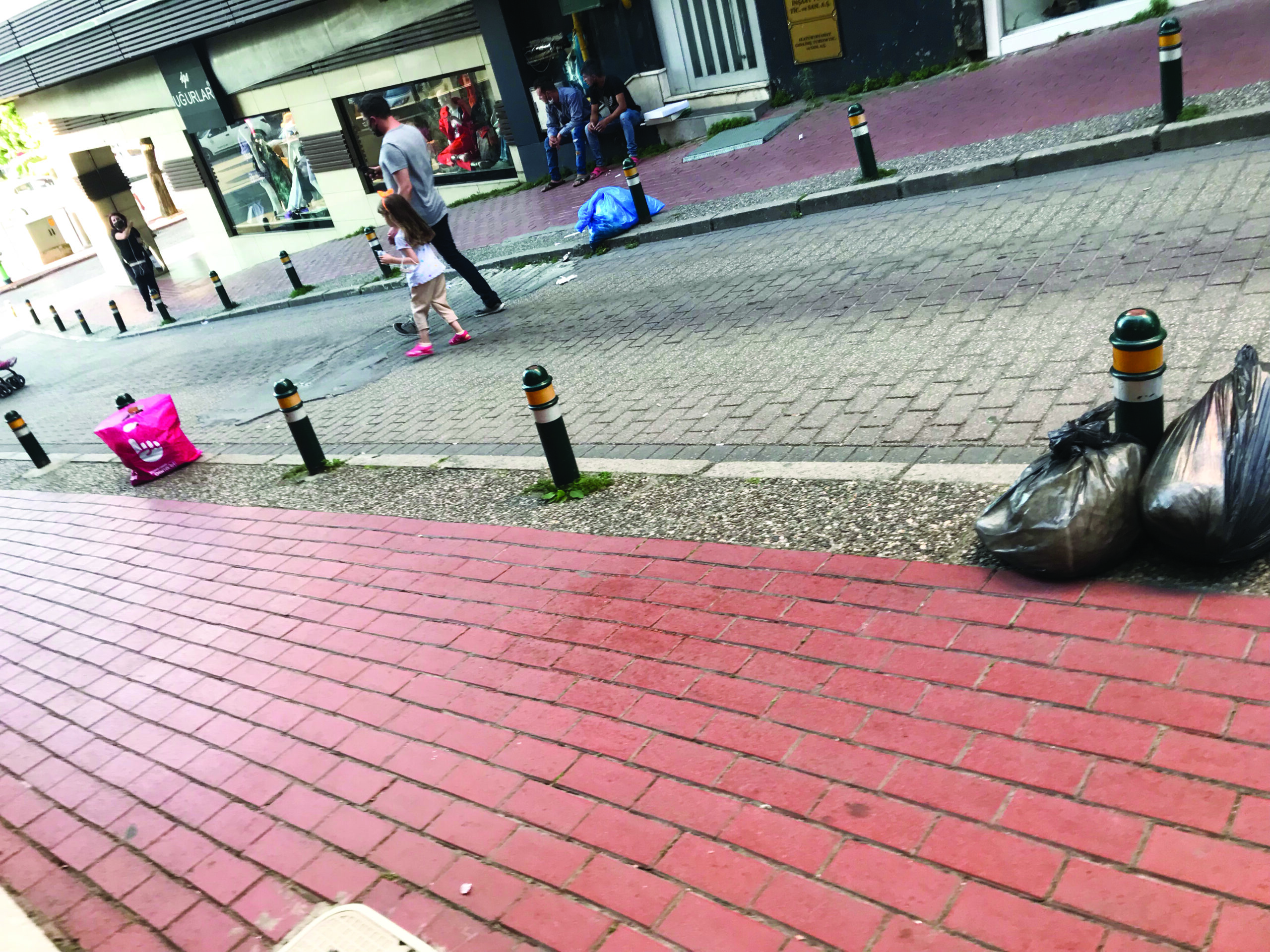 Görüldüğü gibi esnafın çöpleri kaldırımda.