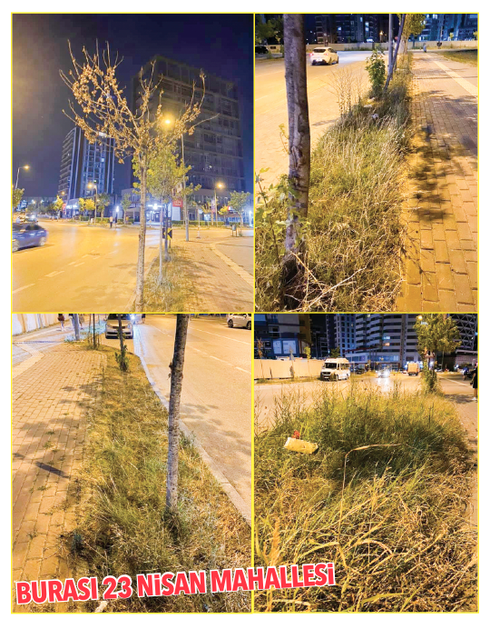 Belediyemizden ricamız, lütfen bu kuruyan ağaçlara bir çözüm bulun, kaldırımlarda gereken temizliği yapın. 23 Nisan Mahallesi bu ilgisizliği hak etmiyor diye düşünüyorum.