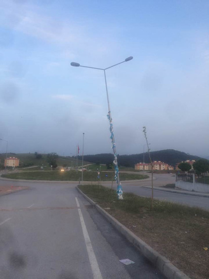 Gürsu TOKİ Konutları’nda İpek Mahallesi girişi A101 market karşısındaki direk resmen yıkılmadım ayaktayım diyor. Ancak yıkılması an meselesi.