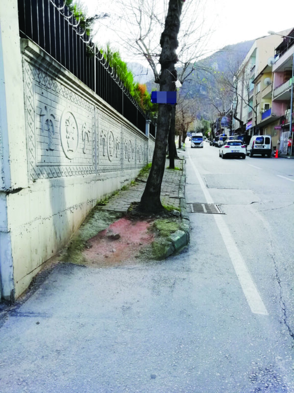 Yandaki fotoğraf da Yıldırım ilçesi Huzurevi Caddesi’ndeki kaldırımdan. Burada görme engelli birinin beyaz bastonuyla yürümeye çalıştığını veya herhangi bir engellinin bu kaldırımda yürümeye çalıştığını düşünün. Takdiri okurlarınıza bırakıyorum.