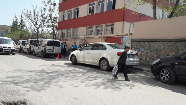 Burası Ortabağlar’da Mehmet Akif Ersoy İlkokulu. Fotoğrafta da görülebildiği gibi, okulun önü otopark gibi. Kaldırımlar deseniz bir kişi zor yürüyor. Bir de öğrencilerin giriş çıkışlarındaki kalabalığı düşünürseniz, ayrı bir keşmekeş yaşanıyor. Ayrıca okulumuzda güvenlik görevlisi yok. Kimin girip çıktığı belli değil.