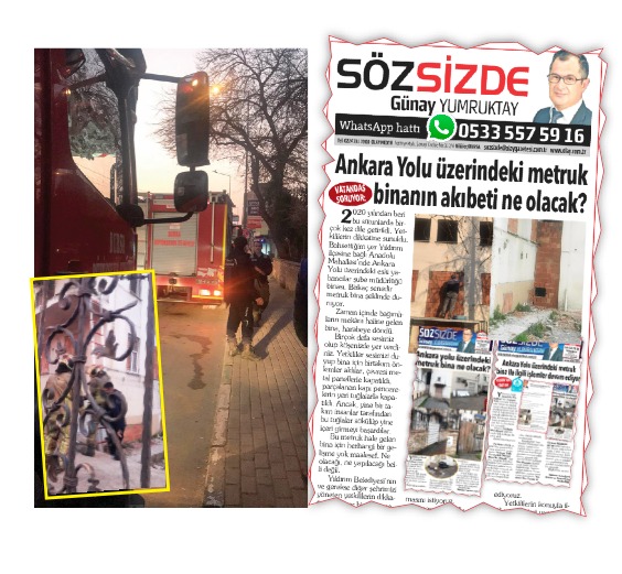 Günay Bey, daha geçtiğimiz günlerde 29 Aralık 2022 tarihli Söz Sizde köşenizde “Vatandaş Soruyor: Ankara Yolu Üzerindeki Metruk Binanın Akıbeti Ne Olacak?” başlığıyla sesimiz olmuştunuz.