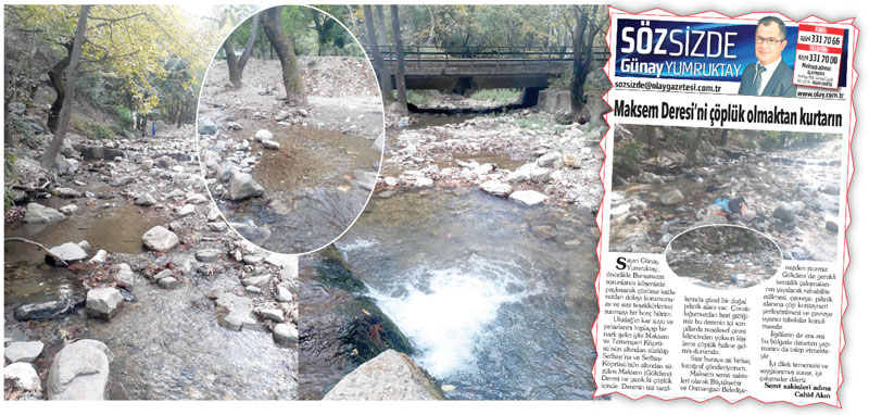 Sayın Günay Bey, 17 Eylül 2020 tarihinde gazetenizin Söz Sizde köşesinde “Maksem Deresi’ni Çöplük Olmaktan Kurtarın” başlığı ile şikâyetimizi ifade eden yazımızı yayımlamıştınız.