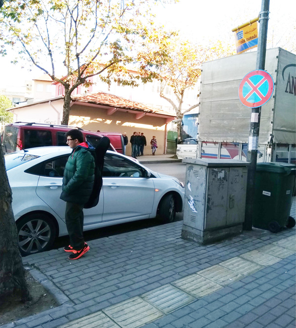Otobüs durağı tabelası var, durulamaz-park edilemez tabelası var. Ama bu kadar uyarıya ve durak tabelasına rağmen, durak alanını boş görmek imkânsız.
