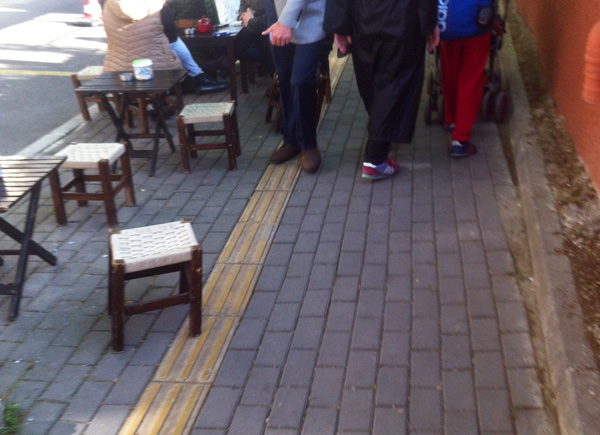 Havaların ısınmasıyla esnaf tarafından kaldırımların kafeterya gibi kullanılmasına başlandı bile. Özellikle kaldırımda yürüyen bayanlar için oldukça sıkıntılı bir durum bu.