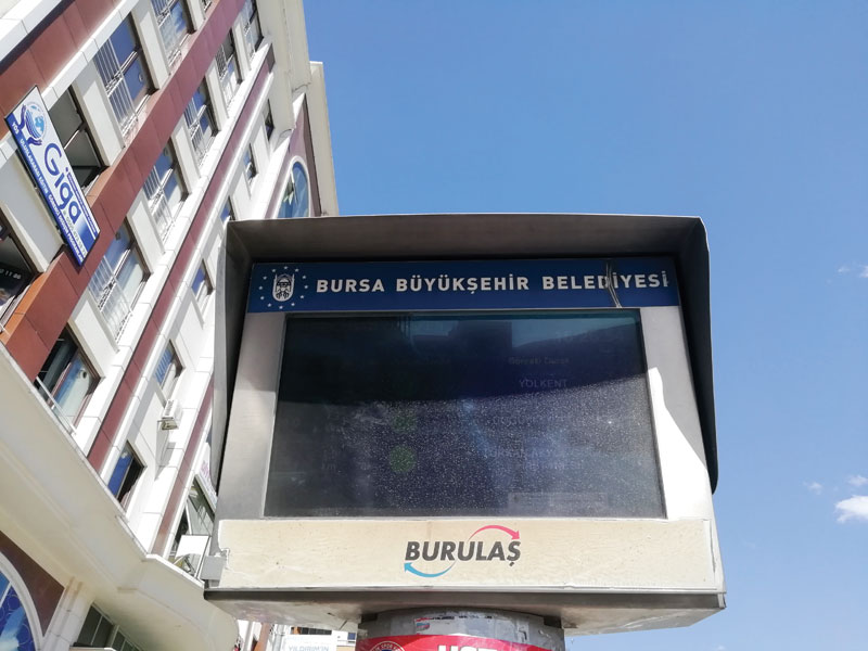 Yıldırım ilçesi Ertuğrulgazi Mahallesi, mesken meydanındaki BURULAŞ’ın güzergâh panosunda maalesef kirlilikten hiçbir şey görülmüyor. Ayrıca, dijital gösterge ve otobüs durağı ilan panosuna dönmüş durumda. Bu kirliliğe de bir son verilmeli.