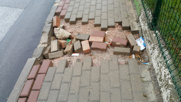Cadde boyu yer yer karşılaşılan bu bozuklukların Yıldırım Belediyesi’nce düzeltilmesi gerekiyor. Çocuk parkının önünde olmasının yanı sıra, yaya yolunu engellemesi ve içinde biriken çöp atıkları nedeniyle son derece çirkin bir görünüm hâkim. Az ilerisinde bulunan otobüs durağını düşünecek olursak vatandaşların ulaşım trafiğini de engelleyen bu aksaklıklara Siteler Mahallesi olarak acil iyileştirme bekliyoruz.