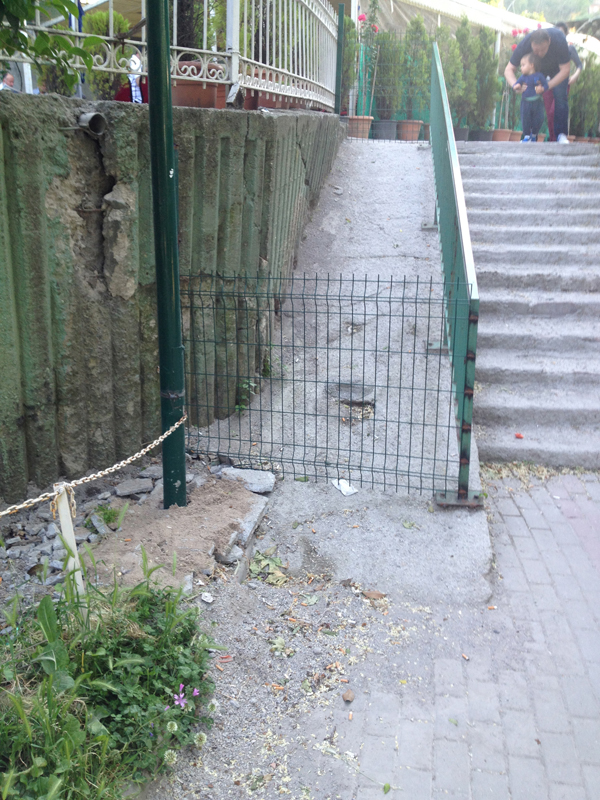 Bu durumun giderilmesi maksadıyla Büyükşehir Belediyesi’ ne başvurduk. Bizler ekiplerin gelip inceleme yaptığını görünce sorunun giderileceğini düşünüp sevinmiştik. Meğer göründüğü gibi değilmiş. Yol çok geçmeden tel örgü çekilerek ulaşıma kapalı hale getirildi. Sorunu gidermek yerine soruna neden olan rampayı iptal etmek daha kolay oldu anlaşılan.
