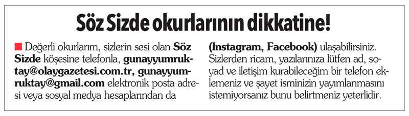 Günay Bey, size Yıldırım ilçesi Pınar Mahallesi’nden ulaşmaktayım. Bölgemiz onlarca hanenin bulunduğu büyük bir mahalle olmasına karşın ulaşım sorunlarımız hiç bitmiyor. BURULAŞ’ın 25 Hat No’lu otobüsü saat başı mahallemize geliyor. Bu güzergâhtaki diğer ulaşım hattı da Ertuğrulgazi hattında çalışan ve Pınar Mahallesi’ne 10 dakikada bir gelen minibüsler.