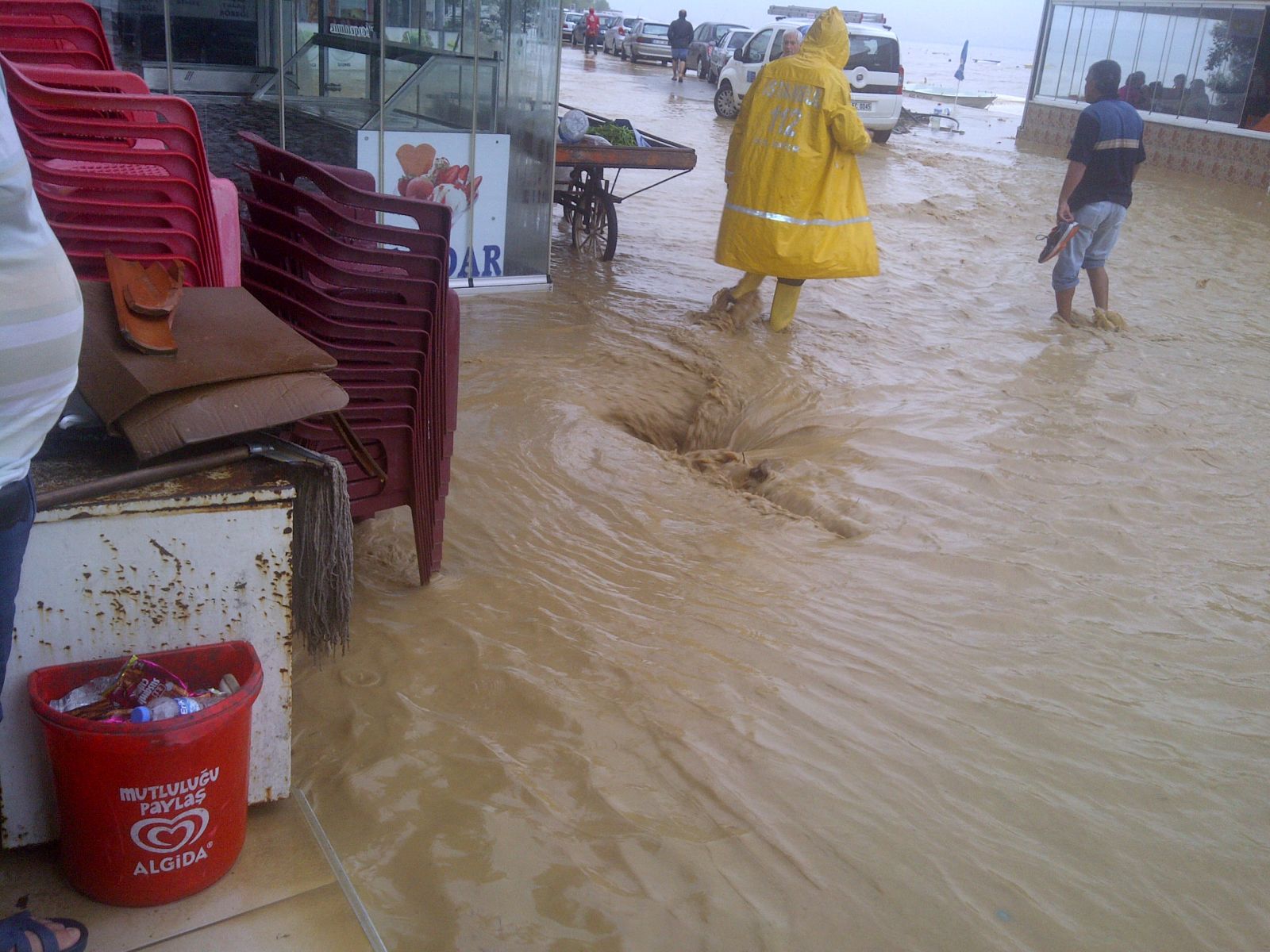 Fotoğraf dağlık veya dere kenarı değil. Burası Kumla’ da Siteler Caddesi. Su birikintisinin sebebi sahil projesinin uygulanması sonucu denize giden bütün giderler kapalı olduğundan dolayı cadde 3-4 saat kulanılmaz hale geldi. Gerekli tedbirler alınmazsa denizin yükselmesi ve dalgalı günlerde yolun boydan boya bu hale geleceğinden kimsenin kuşkusu olmasın. Kışın sahilde oturanların vay haline.