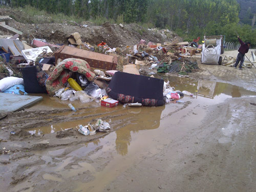 Görüntülerde olduğu gibi denize su tahliyesini vatandaşlar yolu yararak sağlamış. Bahçelerindeki mahsülü zarar görenler de çizmelerini giyip zarar ve ziyanını seyrederek üzülmekte. Evlerini su basan vatandaşlar da zarar görerek kullanılmaz duruma gelen ev eşyasını köşe başlarına atmaktadır. Fotoğraflara baktığınızda çöplük zannettiğiniz yer zarar gören ev eşyasıdır.