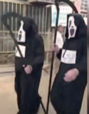 * İran’da belediye çalışanları koronavirüs (Covid-19) nedeniyle fiziksel mesafenin önemini vurgulamak için ‘Azrail’ kostümleri ile sokaklara çıkıp, vatandaşların arasında karıştı.