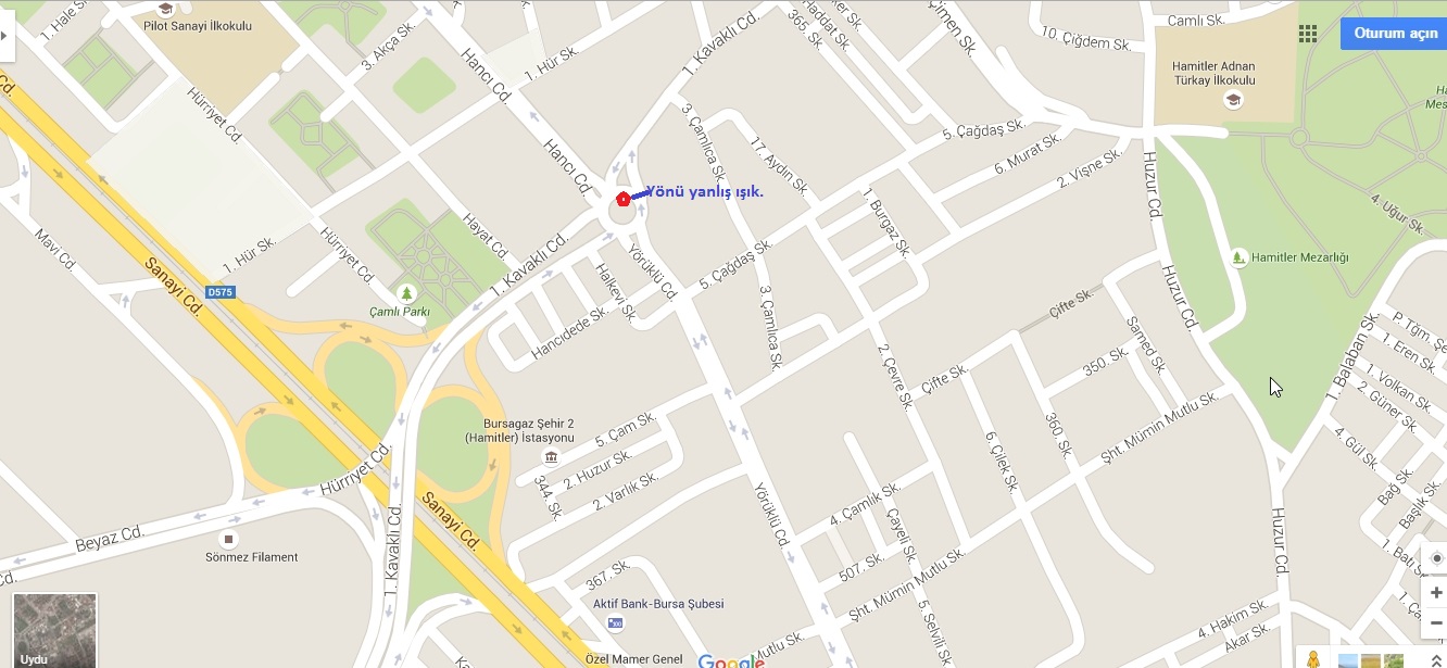 Merkezden Hamitler’e doğru dönünce ilk kavşakta lamba konum hatası var. Işık yanlış konumlandırıldığı için araçlar doğrudan sola dönmekte ve bu durum kazaları da beraberinde getirmektedir.