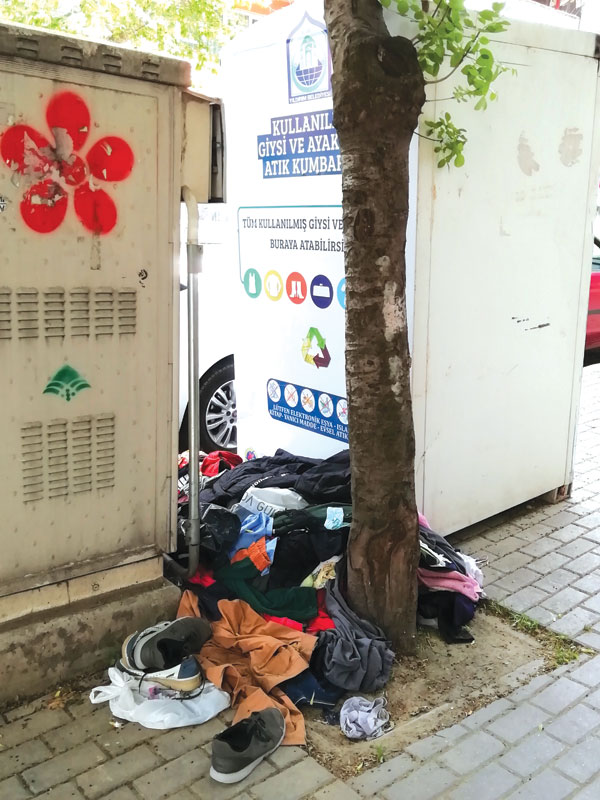 Fotoğraf Yıldırım ilçesi Prof. Tezok Caddesi üzerindeki Kullanılmış Giysi ve Ayakkabı Atık Kumbarası’nın önü.