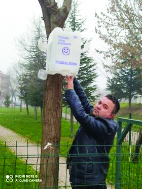 Şimdilerde karlı havalarda, bu soğuk kış günlerinde kuşlar ölmesin, aç kalmasın diye kuş yuvası, yemliği yaparak ağaçlara takıyorum.