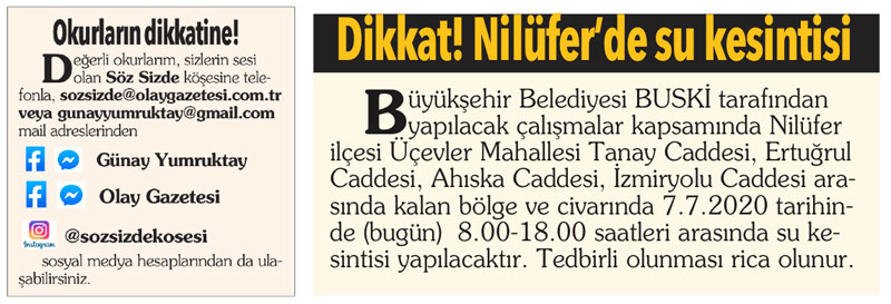 Günay Bey, Olay gazetesinin ve Söz Sizde köşesinin sürekli okuyucusuyum.