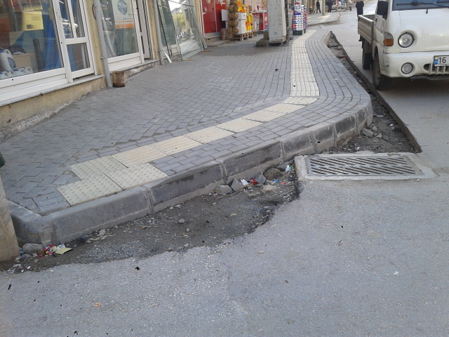Resimde görüldüğü gibi her kaldırımın bitiminde tuzak gibi çukurlar var. Yağmurda ise göle dönüşüyorlar.