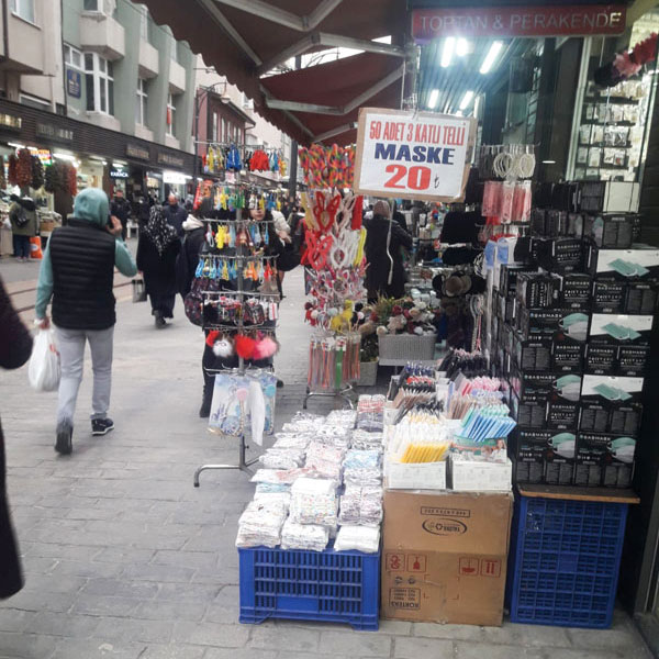 Esnaf, satışını yaptığı ürünlerini işyerlerinin önünde iki, üç sıra halinde sergileyerek insanların caddede, kaldırımda rahatça dolaşmalarını, hatta yürümelerini engelliyor.