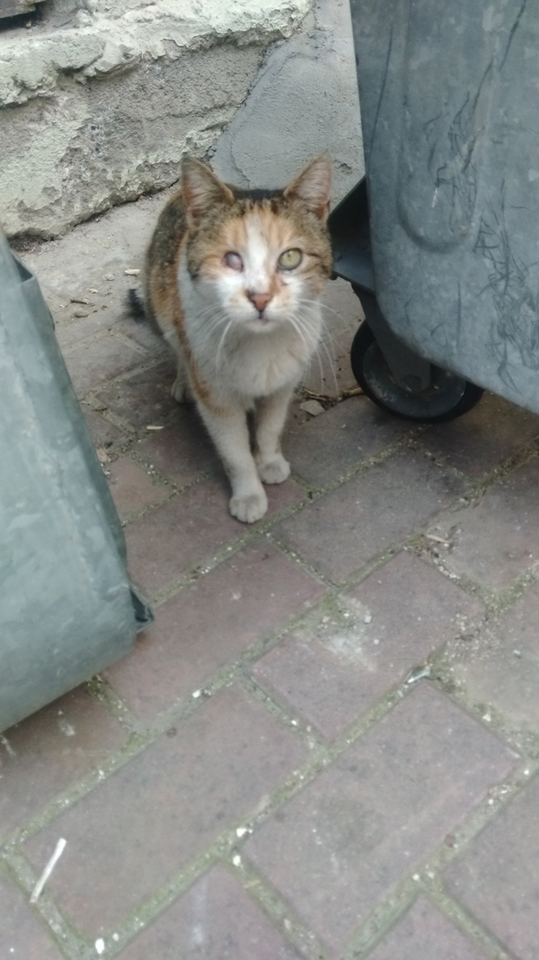 Nilüfer’ de Konak Kültür Merkezi yakınlarında çilingirlerin olduğu sokakta rastladım. Çöp konteynerlerinin yanında duruyordu. Bir an göz göze geldik, gülümsedim, uzattığım elime yaklaştı. İşte o an bir dramı fark ettim. Tek gözü yoktu. Uysal haliyle karşımda durdu, sırtüstü yattı, birkaç kez yuvarlandı. Anlamıştım kendini sevdirmeye çalışıyor ve oyun istiyordu. Tek gözü sevgi arayışına engel değildi. Başını okşarken mutlu olduklarında çıkardıkları ‘ mır… mır…’ larını duyuyordum. Ama aklım olmayan ve akıp giden gözünde kalmıştı. Oyunu daha fazla sürdüremedim. Nilüfer Belediyesi Veteriner İşleri Müdürü Mürsel Büyükçoban’ ı aradım. Durumu anlatıp, hayvanın tıbbi bir yardıma ihtiyacı olabileceğini söyledim. Derhal araç göndereceğini ve aldıracağını söyledi. Konteynerlerin yanında kendini sevdirmeye devam eden Tekir 10 dakika sonra aracın gelmesiyle birlikte uzaklaştı. Görevlilerle peşinden gittik; araçların altında, binaların bahçesinde aradık. Yakalamak mümkün olmadı. Benden kaçmayan hayvanın kendilerinden neden ürküp kaçtığını görevlilere sordum. Meğer köpeklerden iş kıyafetlerine sinen kokuyu almış da ondan dolayı uzaklaşmış. Bunu öğrendiğim iyi oldu; benzer bir durumla karşılaştığımda hayvanı kucağımda ya da elimde, kontrol altında tutacağım…
