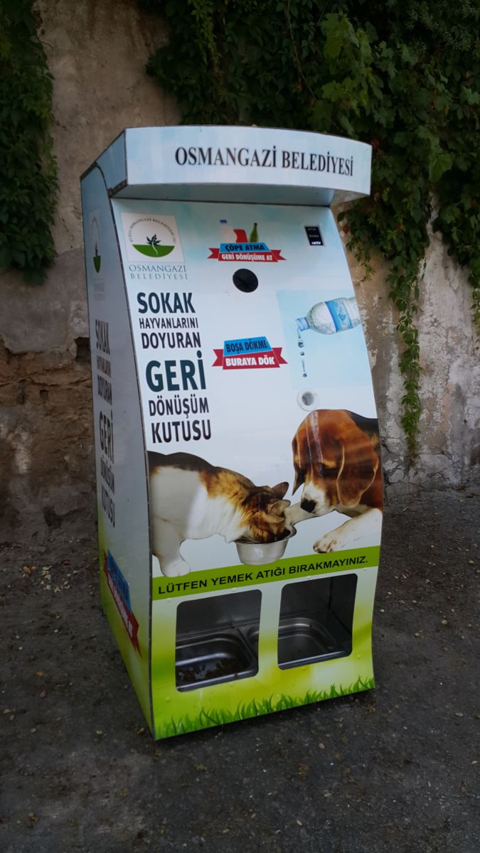 Sokak hayvanlarının su ve yem ihtiyacını karşılayan bankolardan Yıldırım Belediyesi’nce de sağlanmasını istiyoruz. Fotoğrafta yer alan Osmangazi Belediyesi’ne ait sokak hayvanlarını doyuran geri dönüşüm kutusundan Yıldırım Belediyesi’nde de olmasını yetkililerden talep ediyoruz. Bu hizmet, Yıldırım Belediyesi’nde var ise rastlanmayacak kadar az demektir. Bunun çoğaltılması ve minik dostlarımızın yaşam hakkına saygı sağlanmasını talep ediyoruz. Böylece daha medeni ve daha temiz bir bölgede yaşamanın mutluluğunu Yıldırımlılar olarak biz de tadabiliriz.