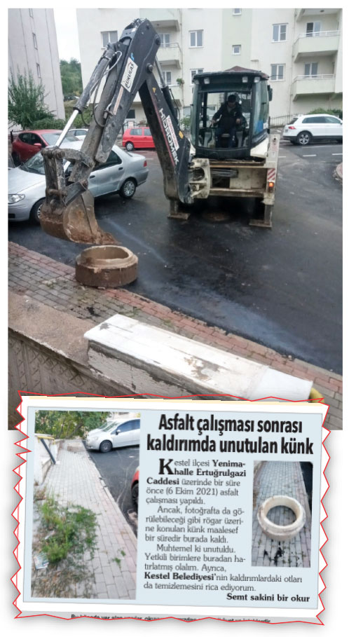 Sorunun hızla çözümüne sunduğunuz katkıdan dolayı size ve Kestel Belediyesi’ne teşekkür ederiz.
