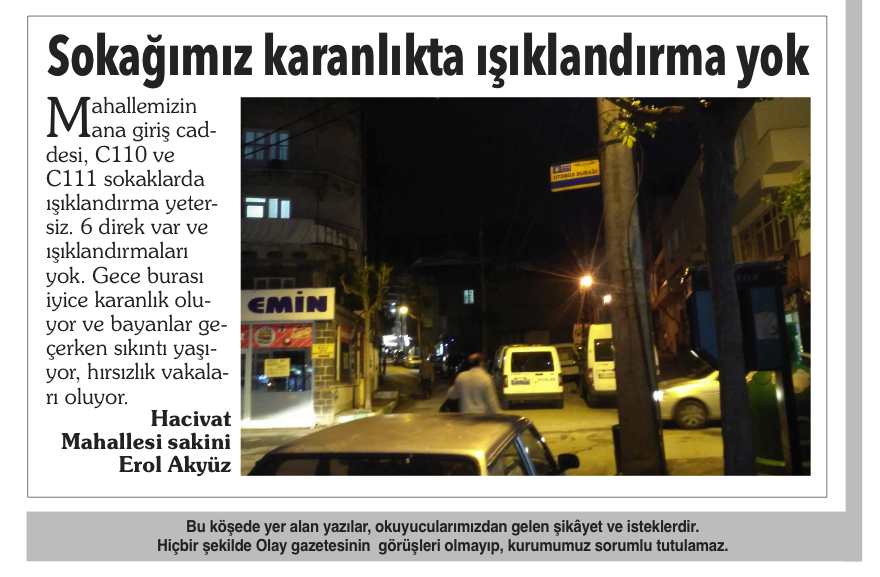 Yetkililerimizin bu ricamıza karşılıksız kalmayacağını ve çözüm üreteceklerini umut ediyor, şimdiden teşekkür ediyoruz. Saygılarımızla.