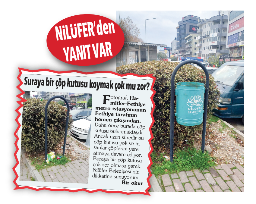 Günay Bey, 7 Aralık 2021 tarihinde Söz Sizde köşesinde yer alan çöp kutusu talebiyle ilgili şikâyetim hemen ertesi gün Nilüfer Belediyesi