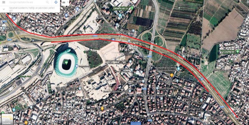 2. Acemler trafiğine çözüm için fotoğrafta kırmızı çizgi ile belirtilen alan yolun genişletilmesi için çok müsait bir alandır. (Gaziakdemir’den başlayarak Mudanya Kavşağı’na kadar olan alan) Yine, bu ve buna benzer alanlar hızlı bir şekilde kamulaştırılarak trafik sorununa hızlı bir çözüm sağlanabilir.