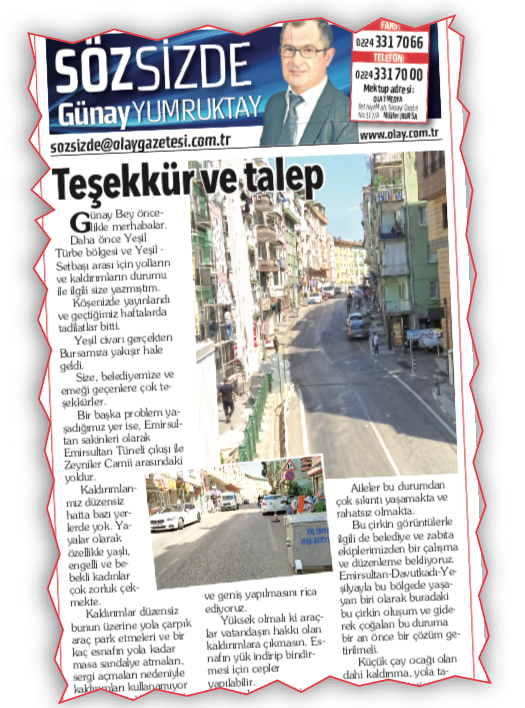 25 Ağustos 2020 Olay gazetenizin Söz Sizde köşesinde yayımlanan “Teşekkür ve Talep” başlıklı okur şikâyeti incelenmiştir.