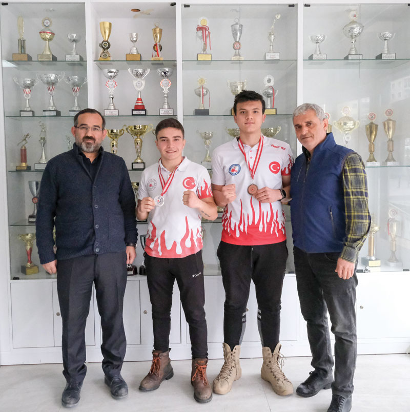 Şampiyonada gösterdiği başarıdan ötürü Okul Müdürü Ömer Yılmaz, Hamza Yiğit ve Hüseyin Hasan’ı tebrik ederek hediye takdim etti.