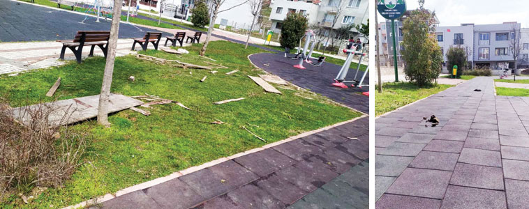 Ayrıca, park genel anlamda bakımsız durumda. Tahta parçaları bu parkta oynayan küçük çocuklar için hem riskli hem kötü bir görüntü.