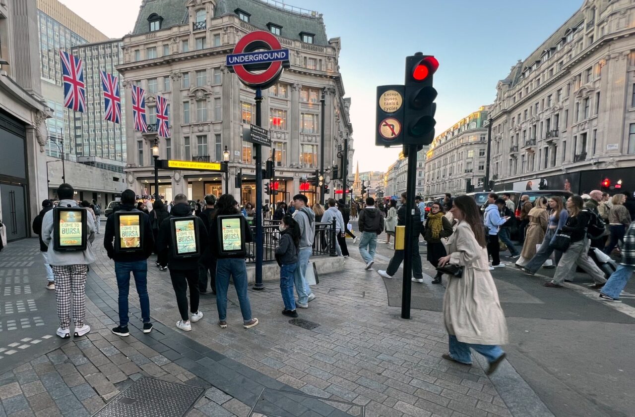 Şirket kaynaklarıyla finanse edildiğini öğrendiğimiz, ‘Come to Bursa’ temalı dijital ekranlı sırt çantalarıyla yapılan tanıtım kampanyası İngiliz başkentinde ilgi görmüş.