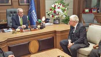 Önceki gün, Büyükşehir Belediye Başkanı Recep Altepe’ye Bursa’ya kazandırılan yeni Büyükşehir Belediye Binası’nda, ‘hayırlı olsun’ ziyaretinde bulunduk.