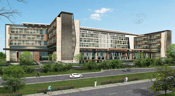 “Osmangazi İlçesi, Hüdavendigar Mahallesi’nde 4548 ada 32 parselde kayıtlı 97 bin 278,86 metrekare taşınmaz üzerinde, 25 bin 657,04 metrekare oturum alanı ve 260 bin 758,54 metrekare kapalı alanlı olarak yapımına başlanan Bursa Ali Osman Sönmez Devlet Hastanesi’nin yapım ihalesi, Bakanlığımız Sağlık Yatırımları Genel Müdürlüğünce 09.05.2016 tarihinde yapılmış ve 24.02.2017 tarihinde yer teslimi ile inşaatına başlanmıştır.”
