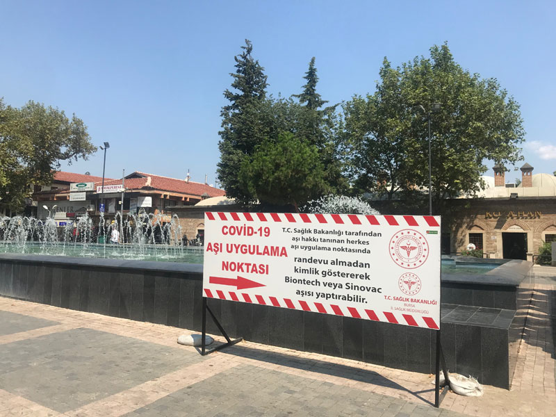 Dün sabah meslektaşım Serkan İnceoğlu ile Büyükşehir Belediyesi Tarihi Binası yanındaki Orhan Meydanı’nda dolaşırken, Osmangazi İlçe Sağlık Müdürlüğü’nün Koza Han önüne aşı çadırı kurduğunu fark ettik. Burada TC kimlik numaranız ve nüfus cüzdanınız ile aşı yaptırmanız çok basit.