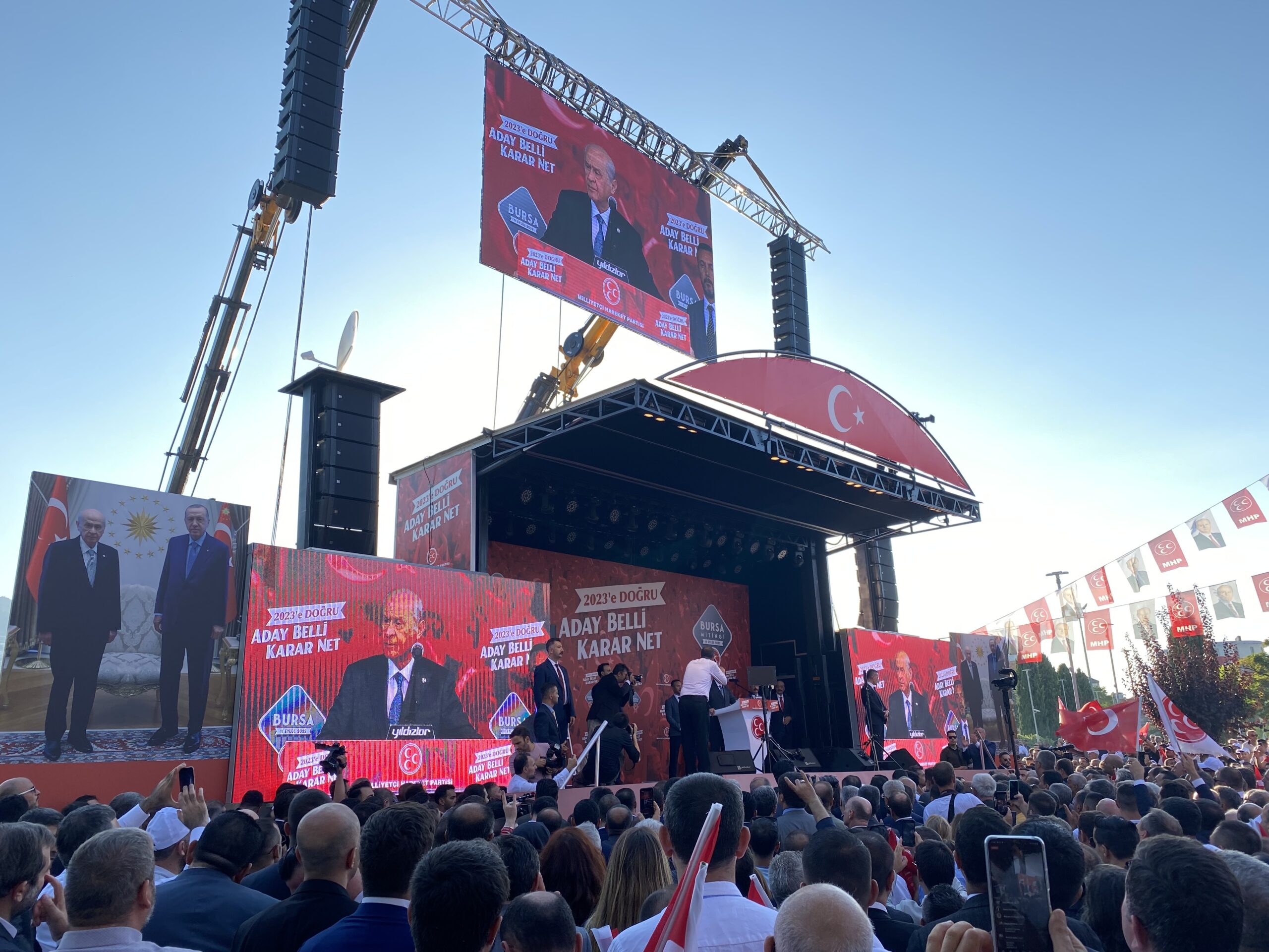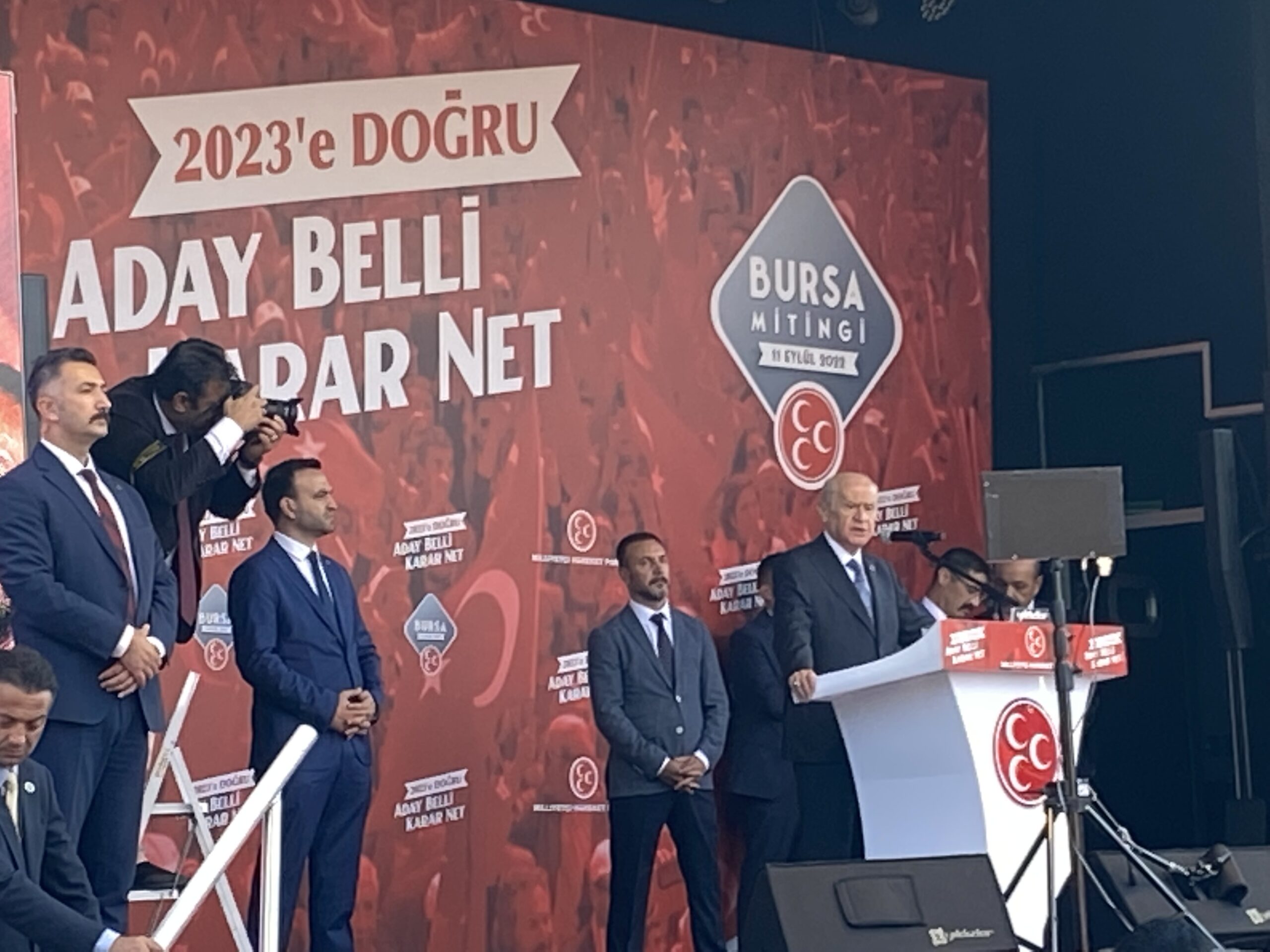 Dün bu minvalde MHP Genel Başkanı Devlet Bahçeli Bursa‘daydı. Partisinin Gökdere Meydanı‘nda düzenlediği ‘Aday belli karar net’ temalı açık hava mitingine katıldı.