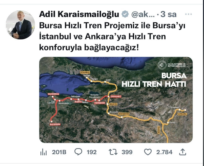 Bakan Karaismailoğlu hızlı tren için 2024 yılını işaret ederken, Bursalılar da paylaşımın altına, “2009’da bitecekti. Bursa’da halen hızlı trenin ne zaman faaliyete gireceği belli değil. Acaba açılan yeni Büyükşehir Belediyesi mezarlığı dolduktan sonra mı gelecek” diye sormuşlar.