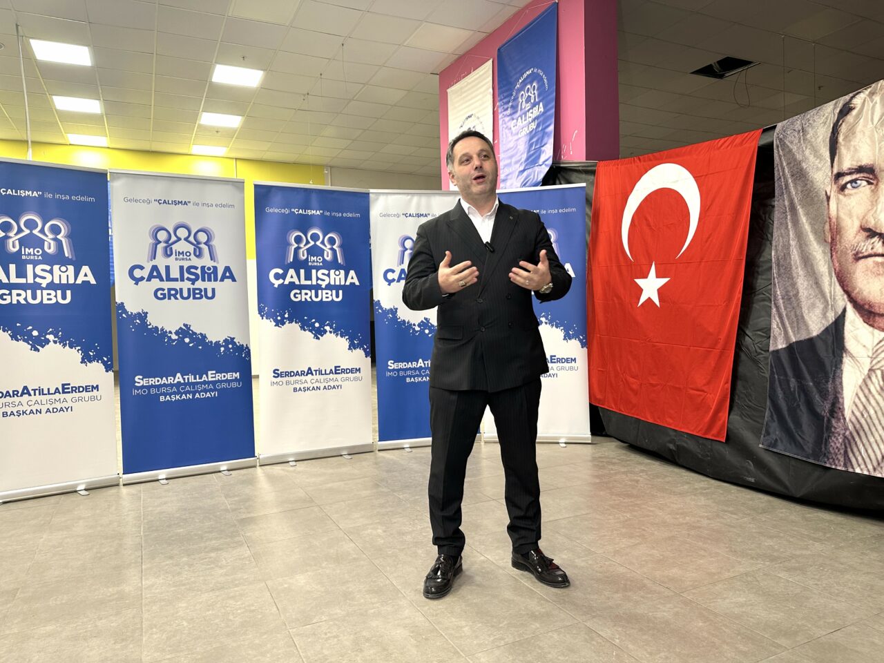 Başkan Erdem’e güçlü bir destek verdiler. Erdem de, 90‘lı yıllardan itibaren vatanın bölünmezliği ve bayrağın inmezliği şiarıyla oluşan Çalışma Grubu ile 1989‘da üniversiteyi bitirip, İMO Bursa Şube‘ye kaydıyla tanıştığını, burada gençlik komisyonları, yönetim kurulu üyeliği, başkan yardımcılığı ve bir dönem de başkanlık yaptığını ve şimdi 20. dönemde yeniden göreve devam etmek istediğini anlattı.