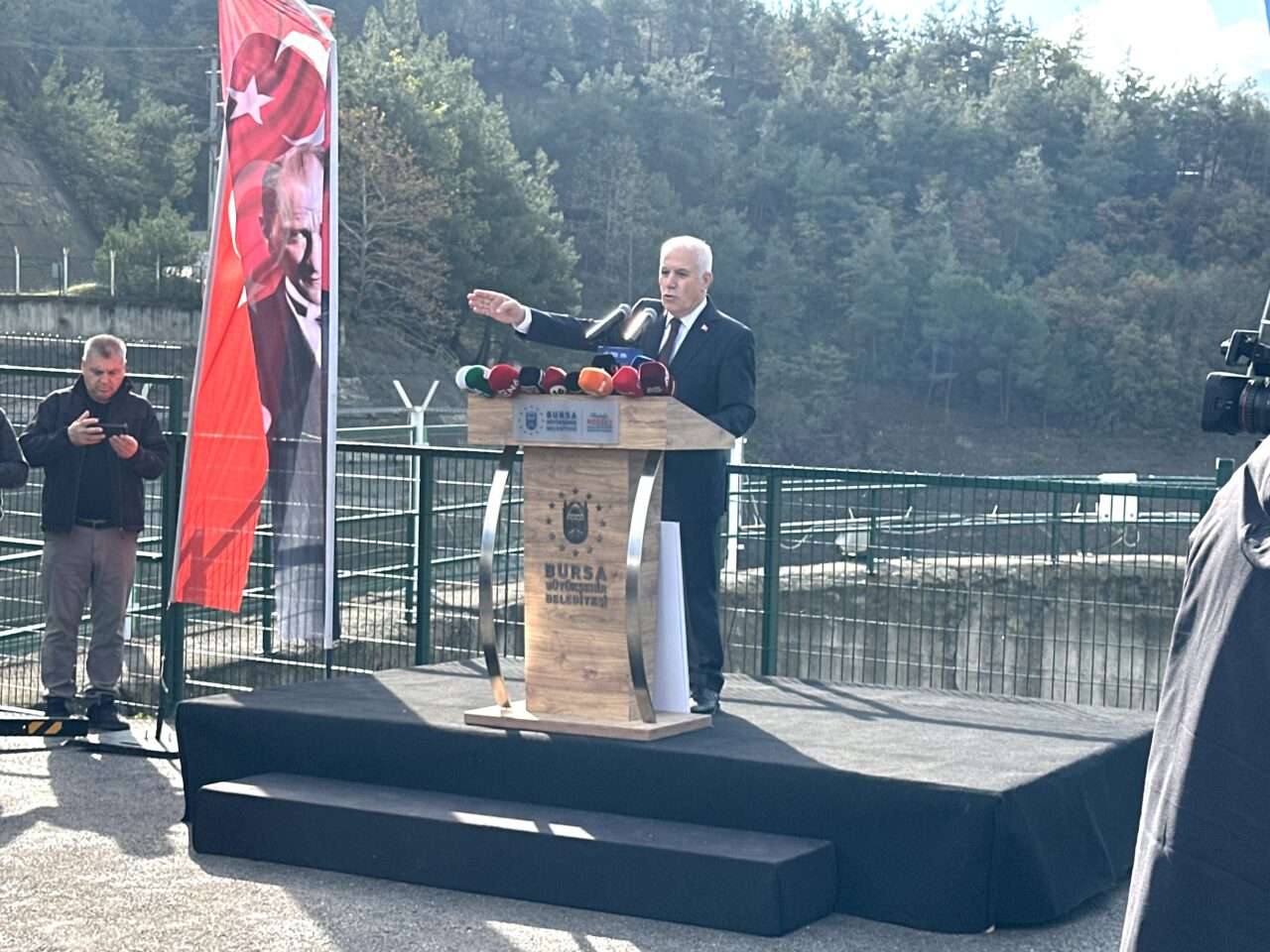 Büyükşehir Belediye Başkanı Mustafa Bozbey bütün bunlara dün Doğancı Barajı kreti üzerinde düzenlediği basın toplantısı ile yanıt verdi. Arka fonda boş bir baraj görüntüsü vardı.