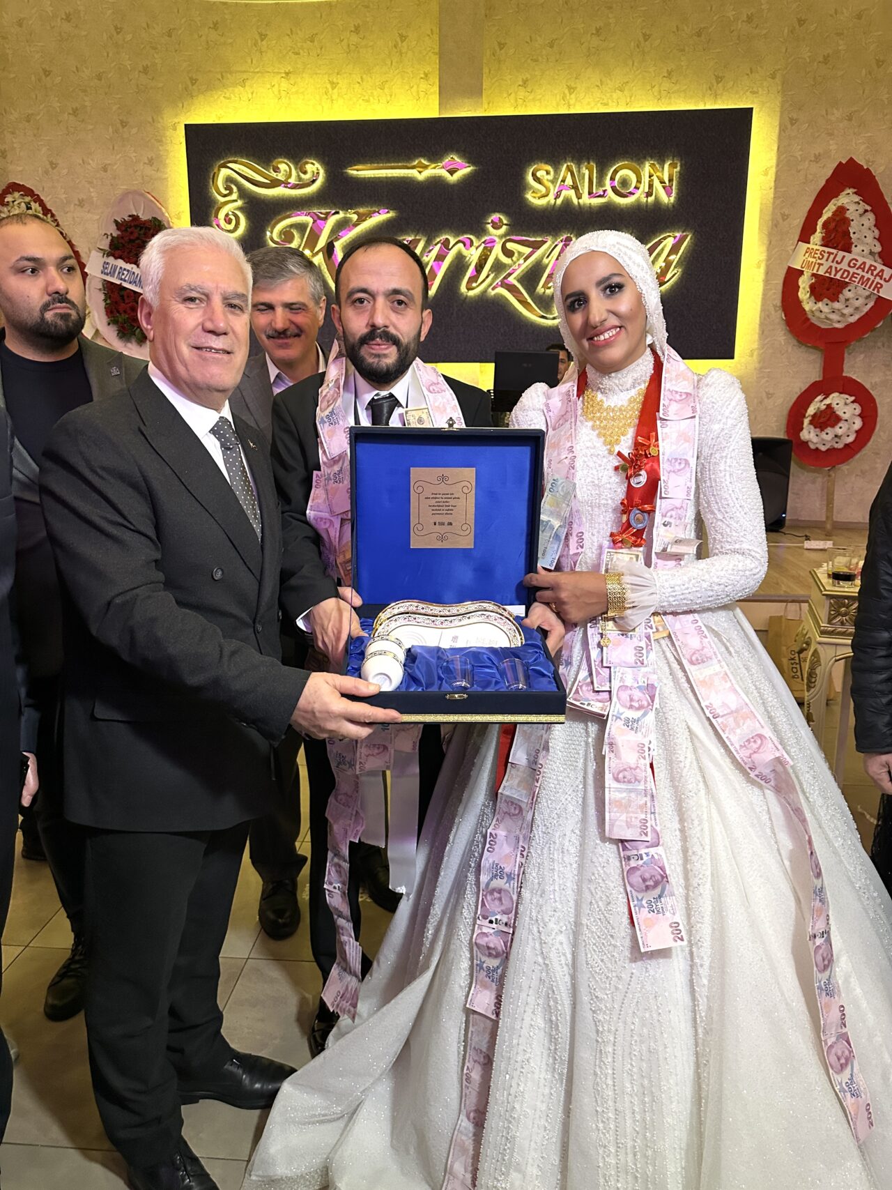 Yunuseli Muhtarı Mesut Sakar da düğününe geldiği ve mutluluklarına şahit olduğu için Başkan Bozbey’e teşekkür etti.