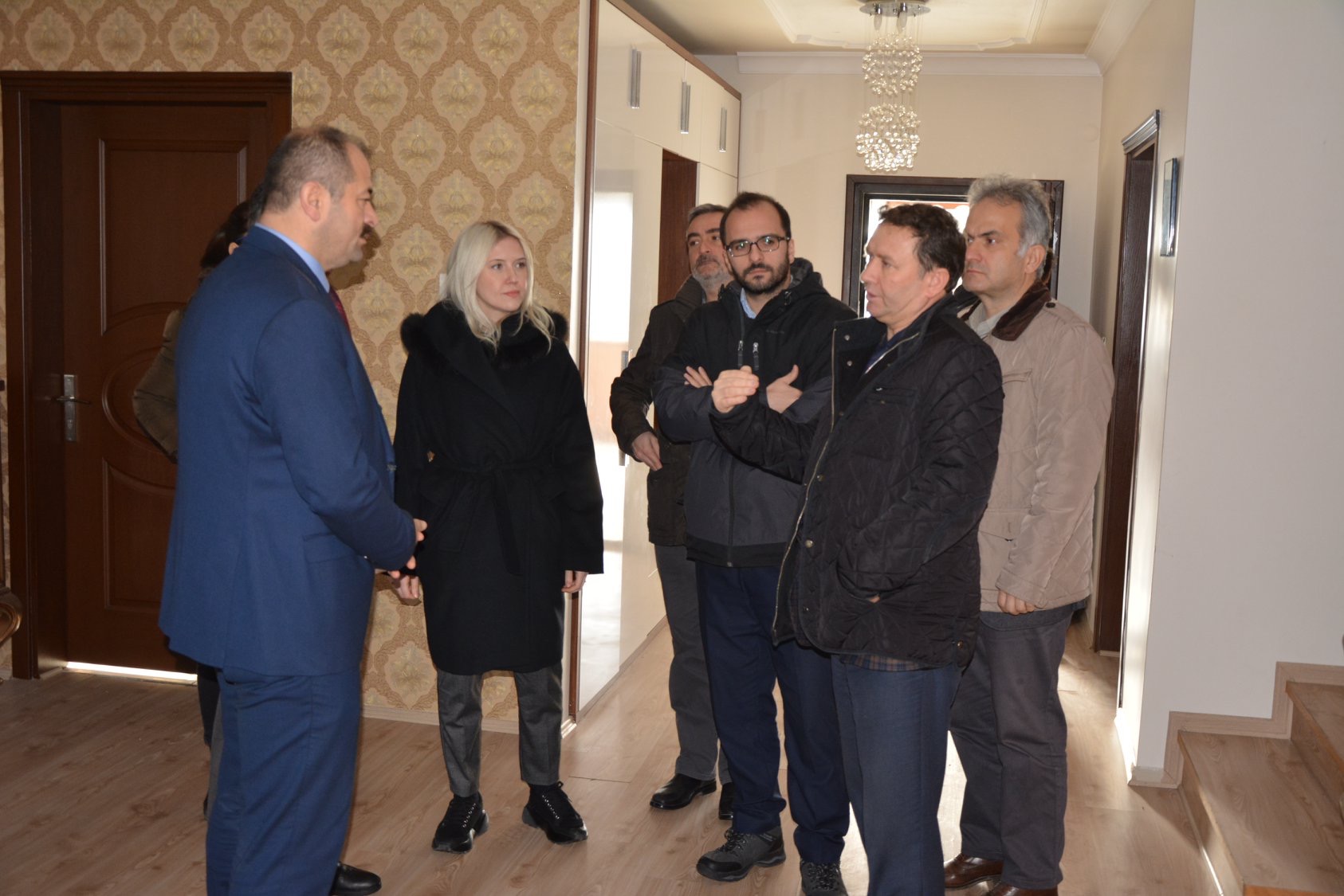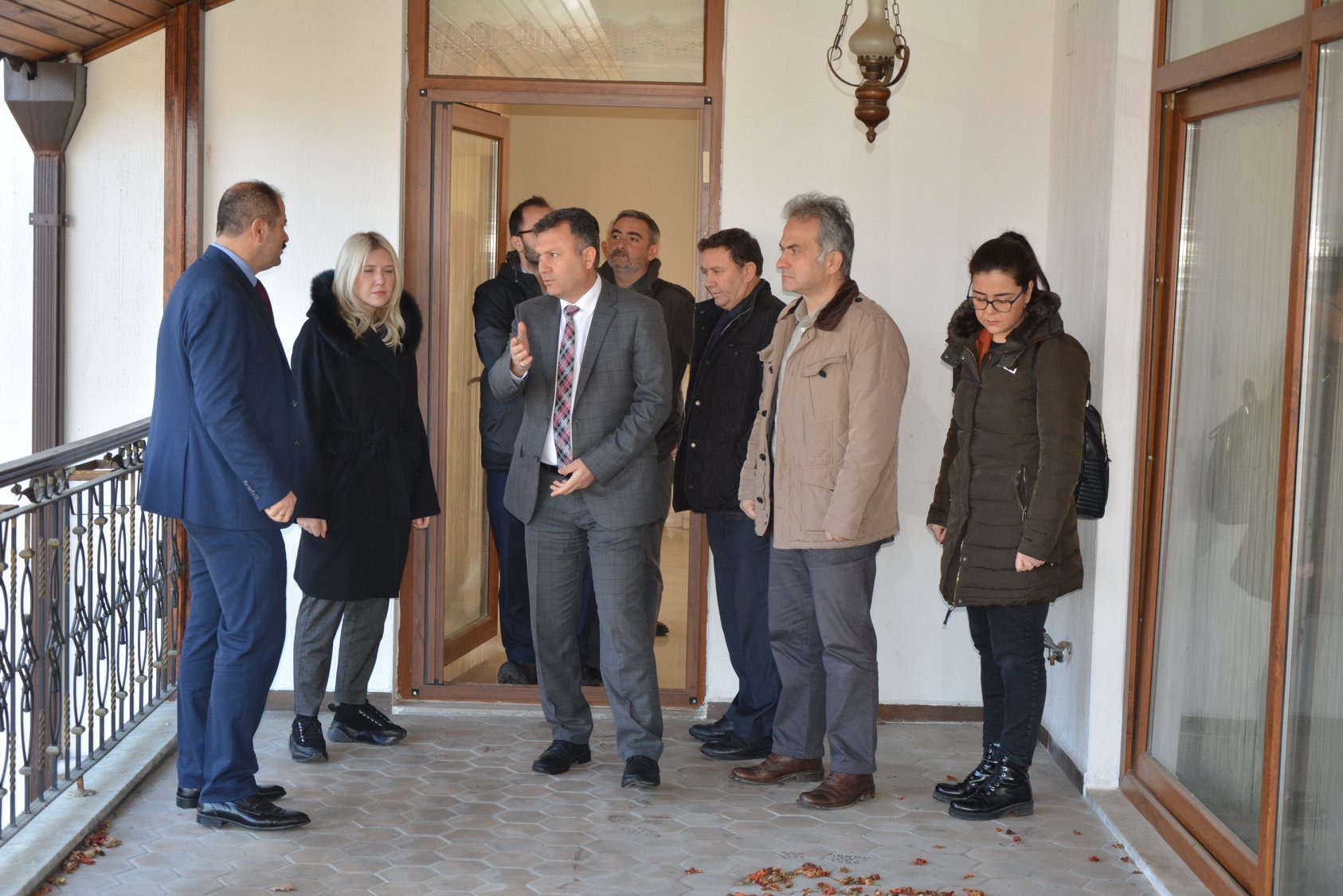Büyükşehir Belediyesi’nden tarihi kültürel miras uzmanı eski daire başkanı Aziz Elbas, Müzeler Şube Müdürü Nazım Enes Altan, Sanat Tarihçisi Dilek Yıldız Karakaş ile Bursa İç Mimarlar Odası Başkanı Nur Gül Arslan eski başkanlık konutunda incelemelerde bulundu.