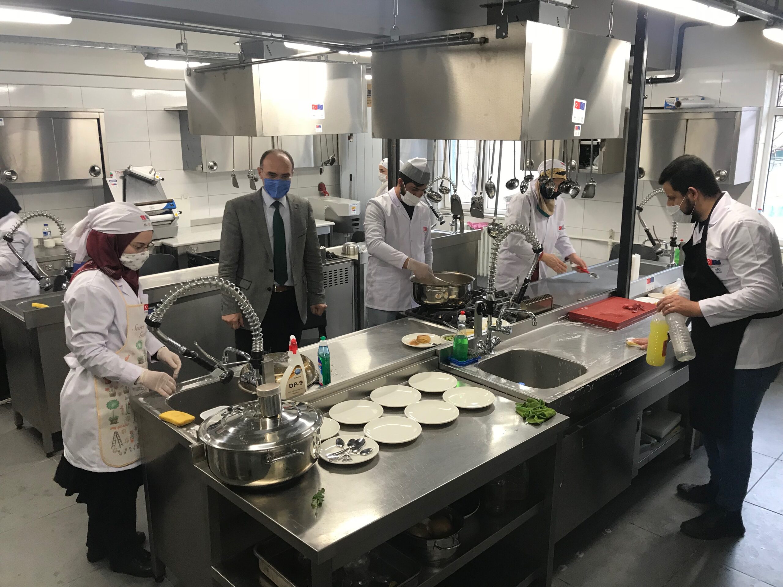 Keza, bitişikteki sınıfın biri ise büyük bir mutfağa dönüştürülmüş, burada da yine iş garantili aşçılar yetiştiriliyor.